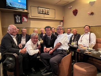 また懇親会では、久しぶりに出席した会員皆様の近況報告話、高校時代の応援練習話しなど、あっと言う間に時間が過ぎ、手島先輩の締のお言葉でお開きとなりました。